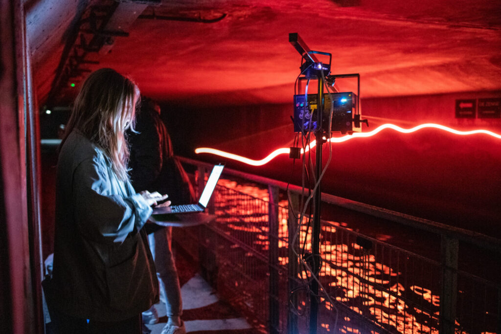 BEHIND THE SCENES Venez à la rencontre des artistes Romain Tardy et Coline Cornélis, à l’origine de l’œuvre numérique installée dans le pertuis de la Senne. Découvrez les outils dont ils maîtrisent les rouages techniques et libérez votre créativité ! Vous expérimenterez comment un laser se comporte dans un milieu aquatique et serez émerveillé par la diversité des formes, couleurs et reflets qu’il peut générer. Grâce à l’utilisation d’un hydrophone, vous plongerez dans les sons du monde aquatique et comprendrez les bases du field recording.